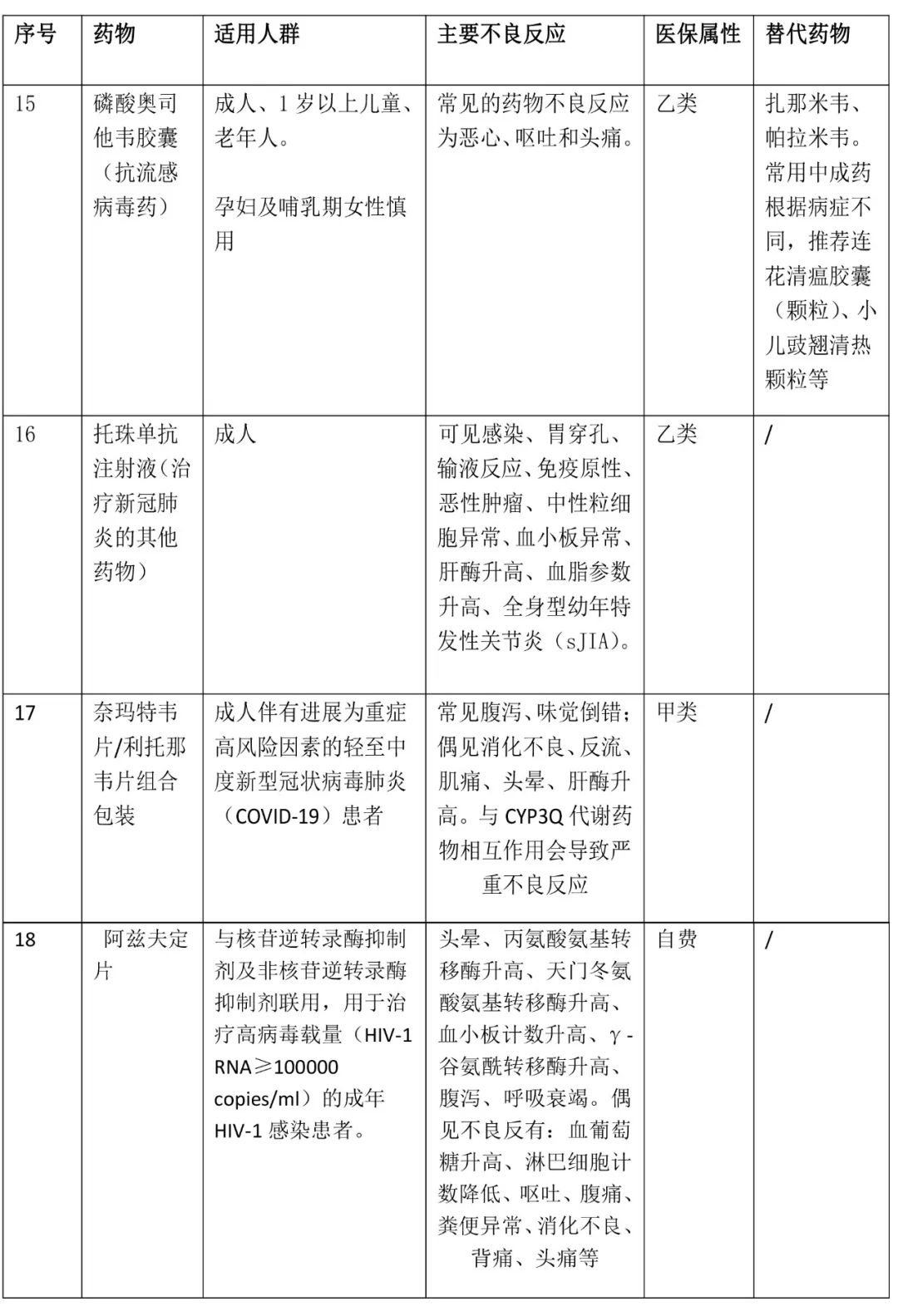 三、《诊疗方案(试行第九版)》推荐用药及其他(西药)