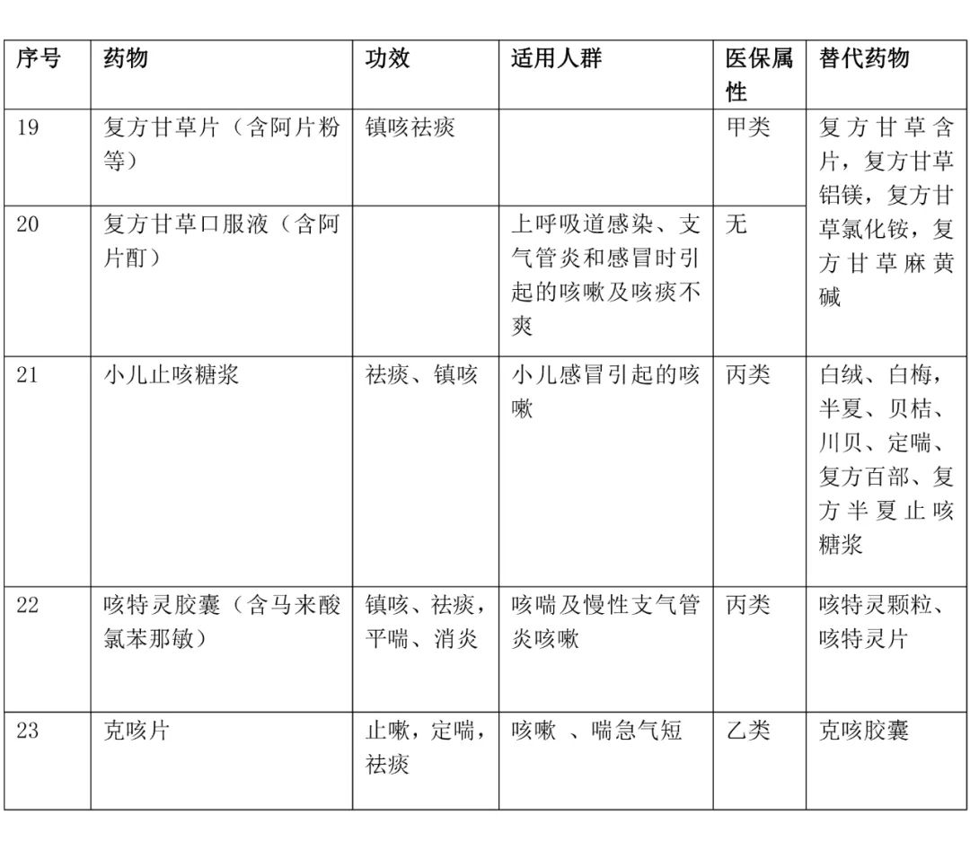 推荐药物:复方甘草片(含阿片粉等)、复方甘草口服液(含阿片酊)、小儿止咳糖浆、咳特灵胶囊(含马来酸氯苯那敏)、克咳片