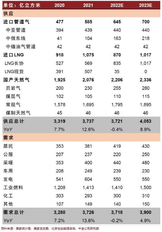 2022—2023年中国天然气供需平衡预测