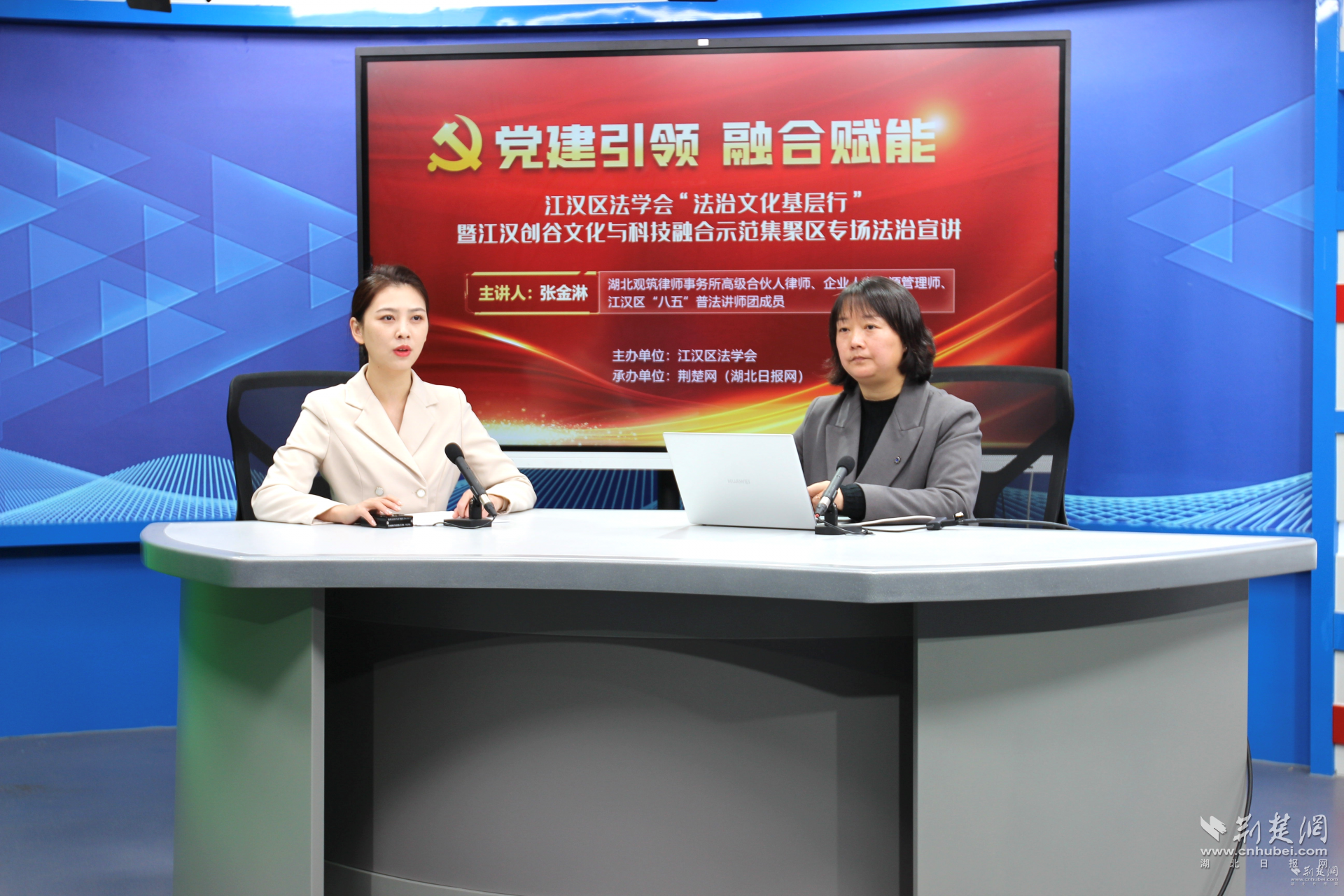 荆楚网(湖北日报网)讯(记者邱玲鹏 通讯员吴桐)12月29日上午,由武汉市江汉区法学会主办、荆楚网(湖北日报网)承办的两场“法治文化基层行”集聚区专场法治宣讲直播活动在荆楚网演播室精彩开讲。
