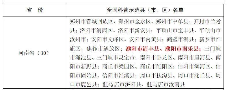 濮阳市清丰县、南乐县上榜