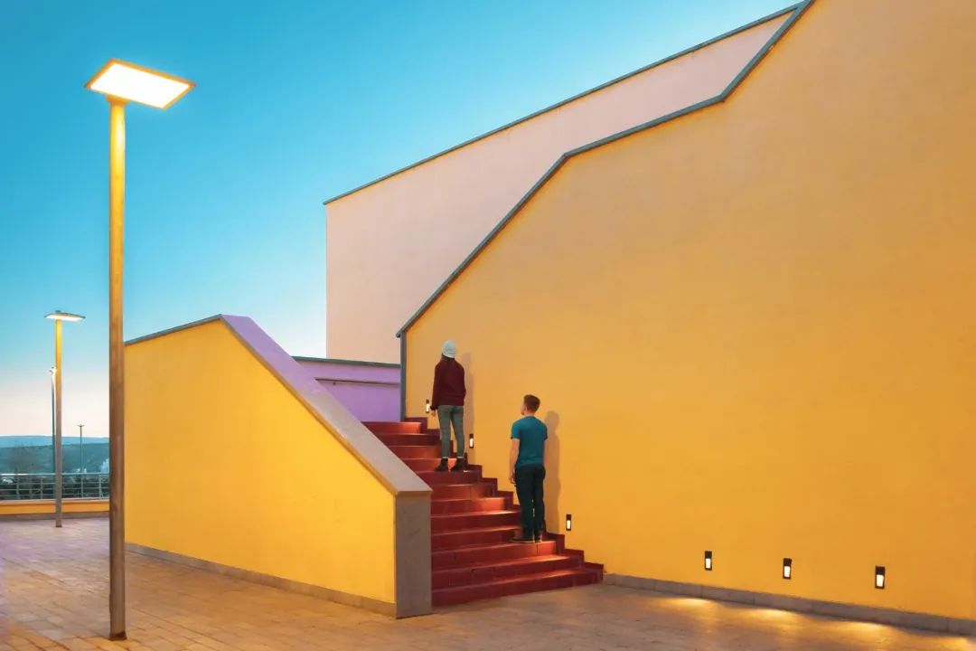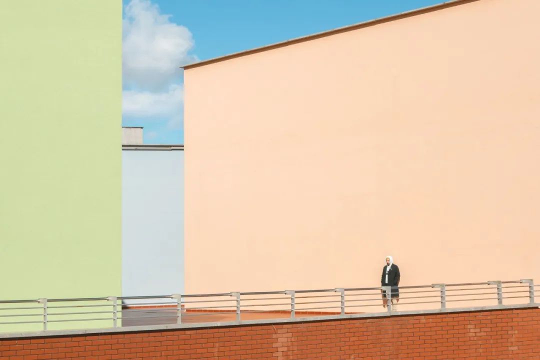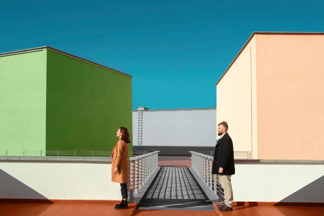 几何的建物、鲜明的色块与力度感的线条,小人物穿梭其中,竟能带出彼此内心里隐讳的一面,Natia 将此系列影像命名为LOVE,既意味着爱情,也是关于人际的处理。