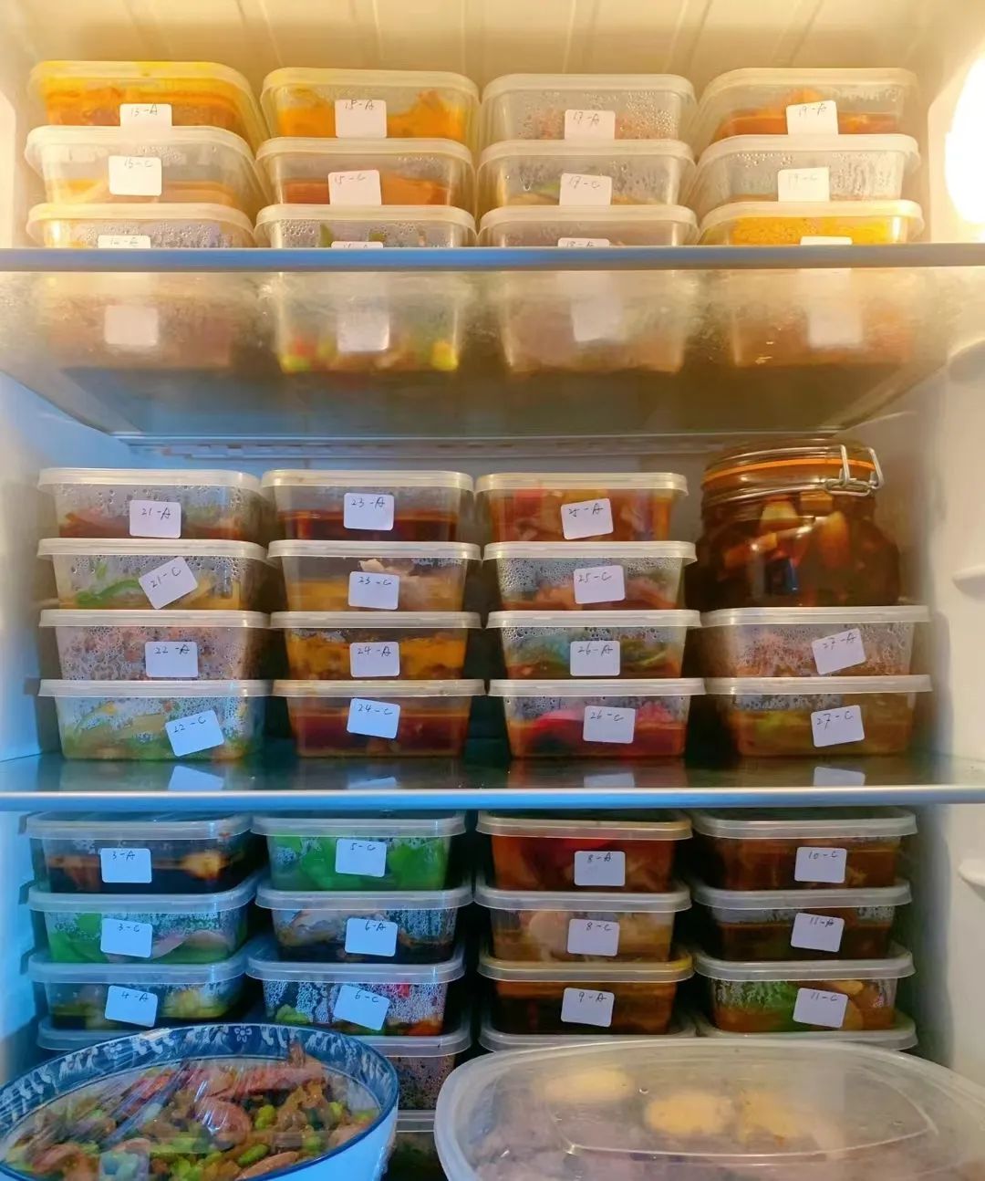 为了不让我洗碗,买了外卖打包盒;知道我不喜欢吃重复的菜,每盒都贴上了标签。