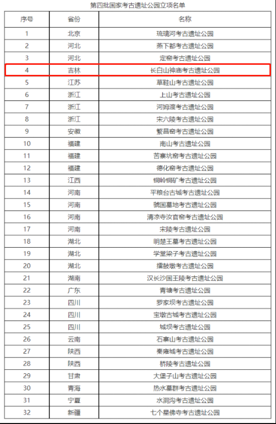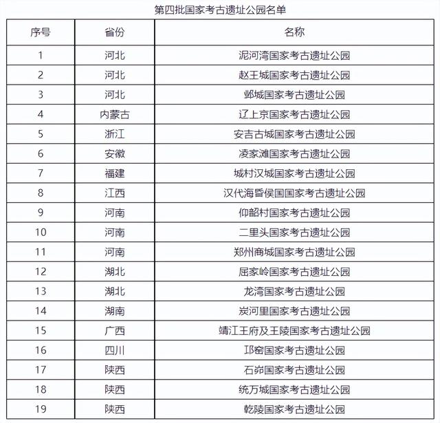 据国家文物局消息,根据《国家考古遗址公园管理办法》等有关规定,国家文物局组织开展了第四批国家考古遗址公园评定工作。根据材料审核、现场考察和专家评议等情况,泥河湾等19处考古遗址公园列入国家考古遗址公园名单,长白山神庙考古遗址公园、琉璃河等32处考古遗址公园列入国家考古遗址公园立项名单。