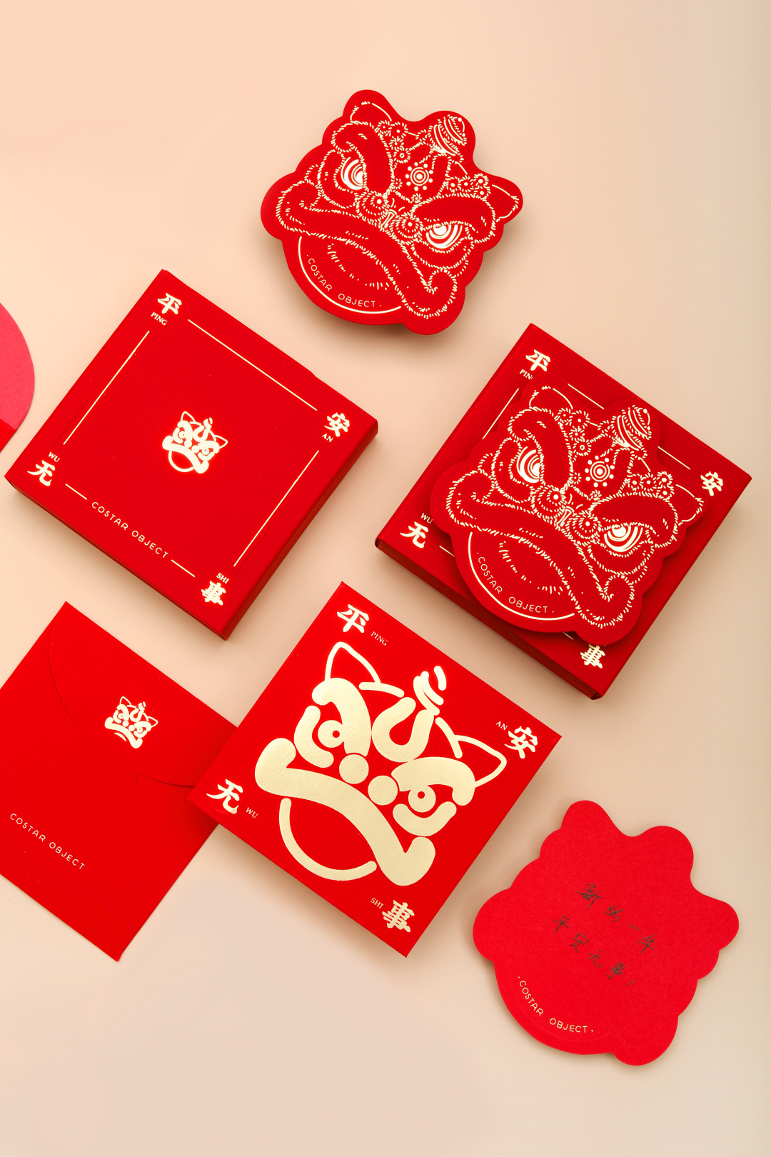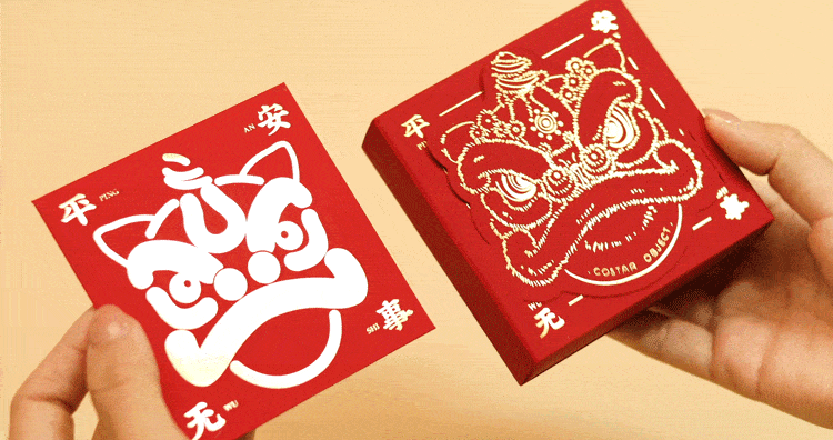 舞狮的礼盒设计,实在太好看了。摸上去如丝绸般触感,红色卡纸烫金,送礼更得体大方。