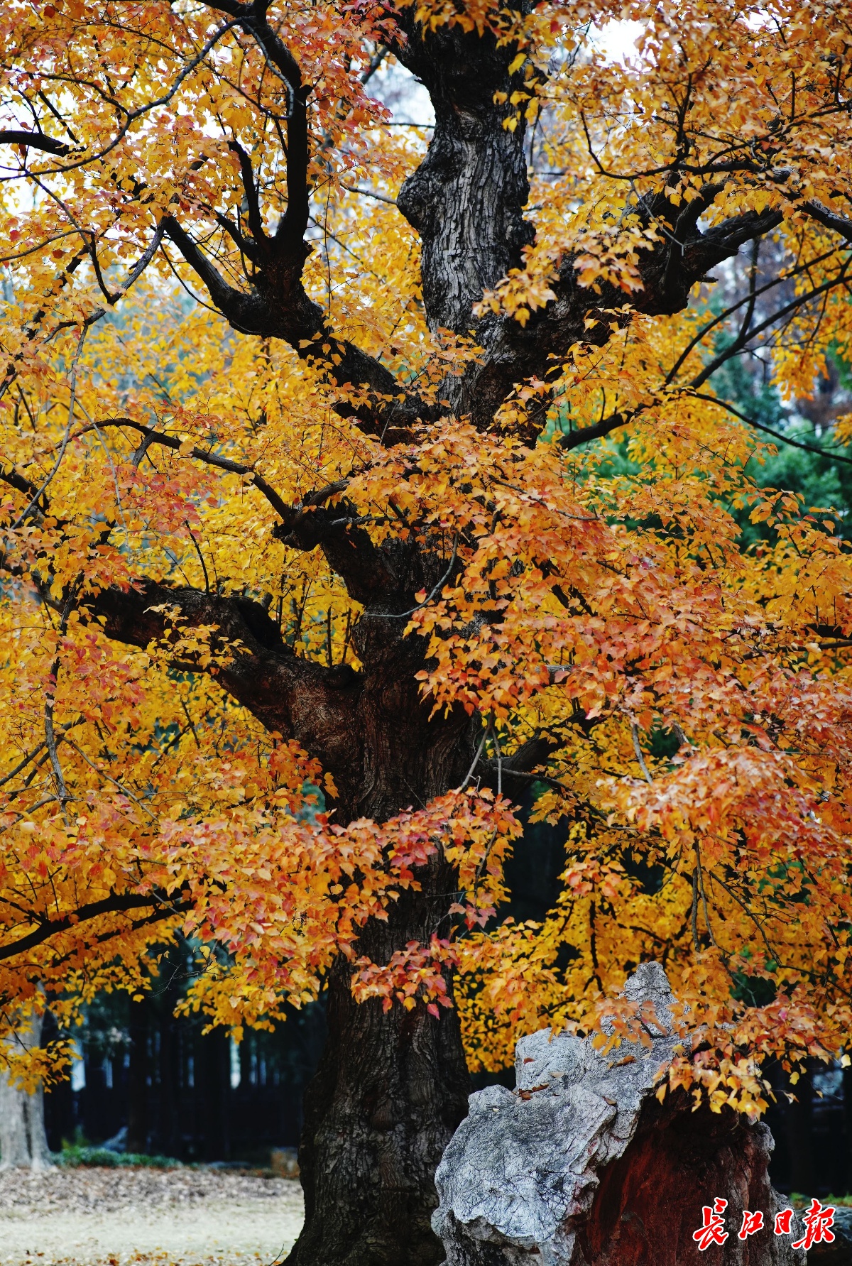 园中200余岁的三角枫已进入最佳观赏期。记者何晓刚 摄