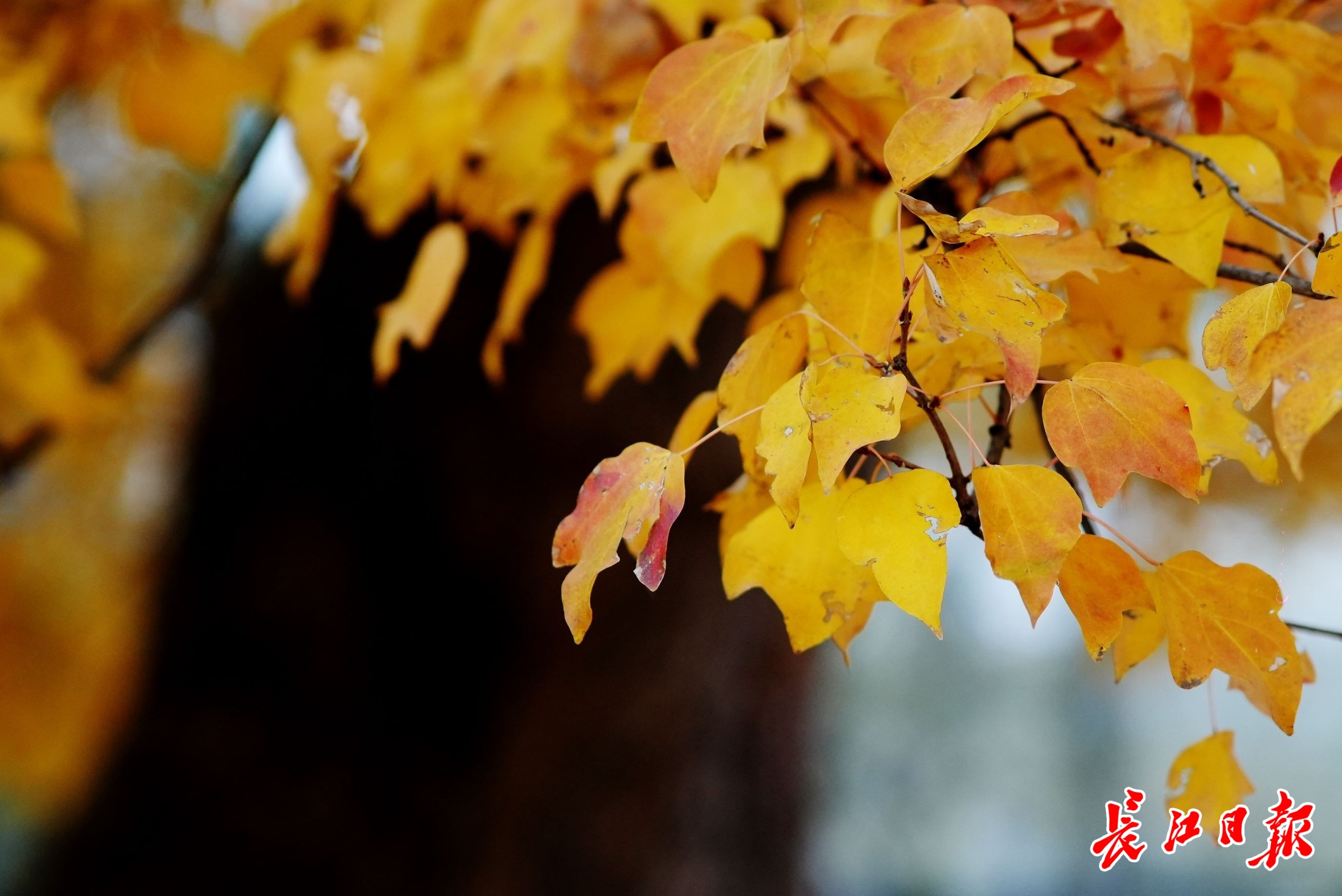 长江日报大武汉客户端12月30日讯(记者范雅琴 通讯员万娜)梧桐飞舞,枫叶成雨,池杉泛红,候鸟盘旋......在暖阳的照射下,冬日的东湖红橙黄绿交相辉映,色彩斑斓,宛若童话世界。12月29日,记者从东湖落雁景区获悉,园中200余岁的三角枫黄红相间,已进入最佳观赏期。