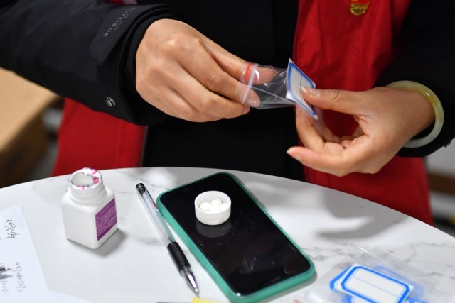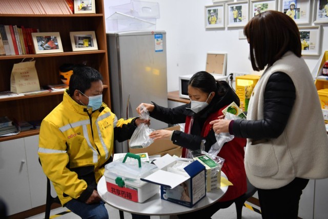 “我暂时没有发烧,但是有咳嗽的症状。”张云峰向社区工作人员简单说明了健康状况后,领取了退热药、止咳药和口罩。“我们一线外卖人员接触的人多,感染风险大,政府部门及时为我们发药,让我觉得很有保障。”张云峰说。