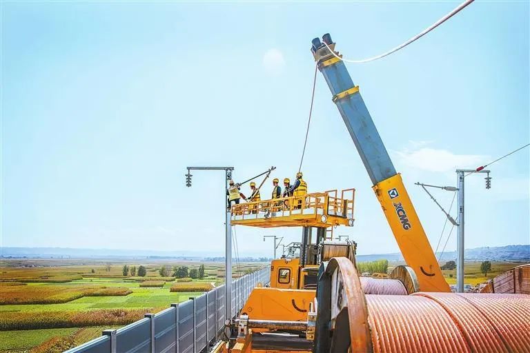 2021年9月2日,中兰客专全线首条接触网导线开始架设;