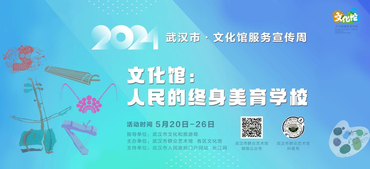 本次文化馆服务宣传周由武汉市文化和旅游局指导,武汉市群众艺术馆、各区文化馆主办,武汉市人民政府门户网站、长江网支持。好戏连台、精彩不断,初夏微风里,我们邀您共赴一场文化之约,体验“文化馆:人民的终身美育学校”的无限魅力。