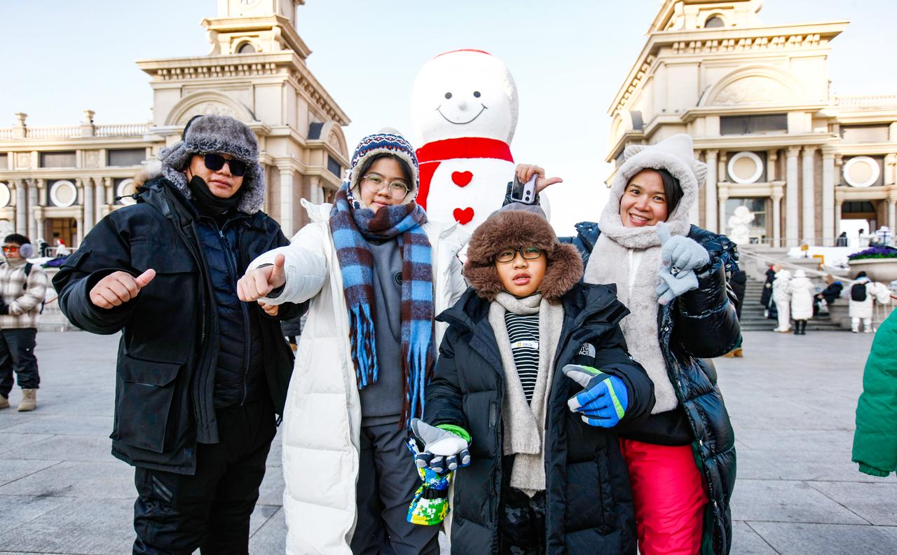 来自广东东莞的游客为“尔滨”雪景点赞