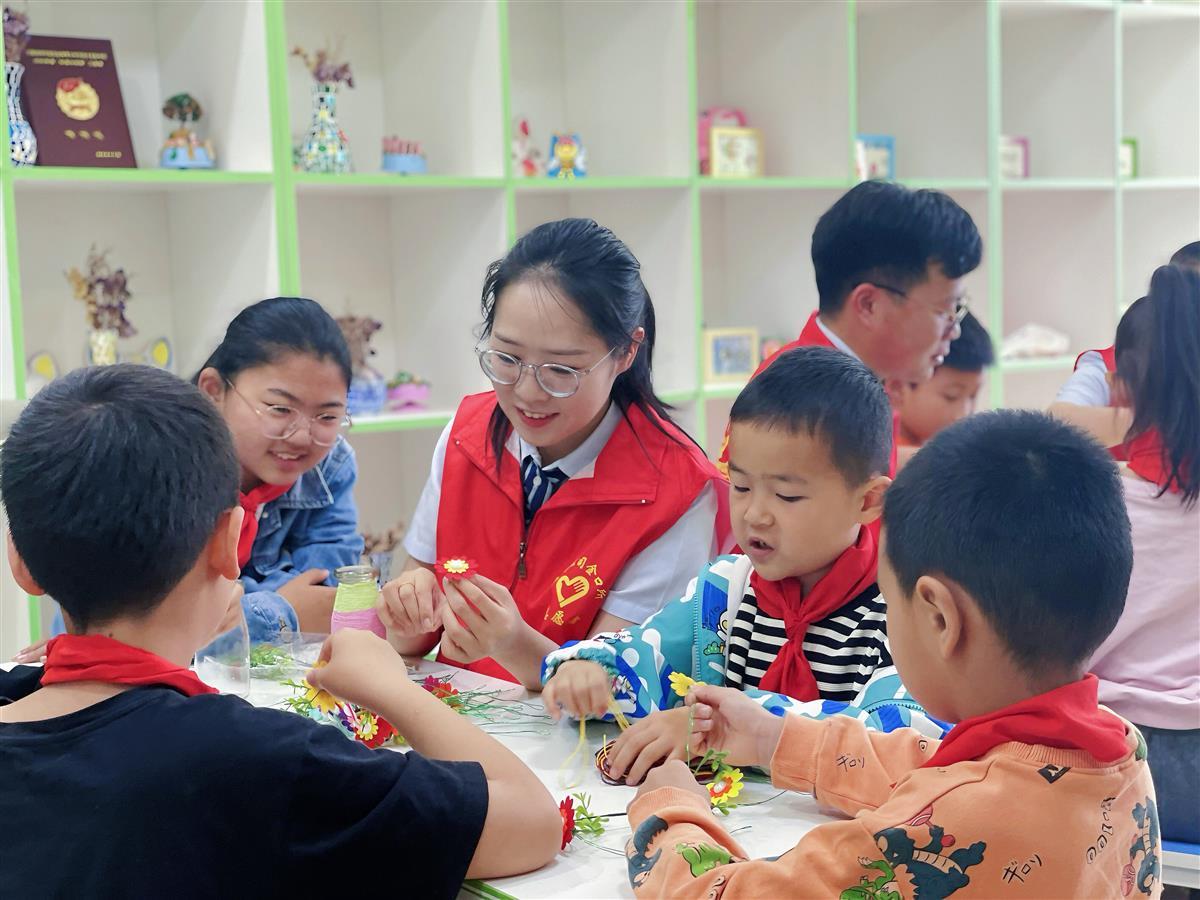 志愿者和孩子们一起做手工