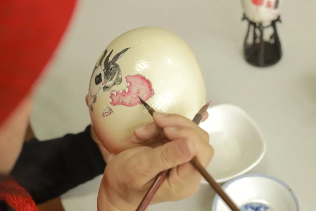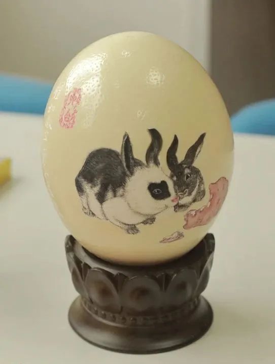 饱满的蛋壳上,可爱的兔子栩栩如生,娇小玲珑、憨态可掬,浑身毛茸茸、圆滚滚的模样惹人喜爱。