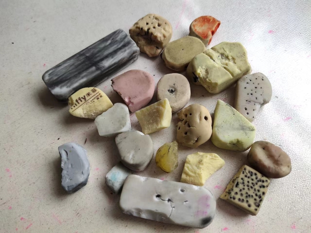 “磨洋工”现象不仅发生在家里,在班级里也较为常见。说到这个话题,象山县实验小学一年级语文老师鲍欣突击检查,把班上学生的橡皮收了上来。不出她所料,基本上每一块橡皮都有被“蹂躏”过的痕迹。有的橡皮被扎成“马蜂窝”,有的被切开、掰碎,有的白色橡皮已经被涂成了花花绿绿的颜色……总之,这些“伤痕累累”的橡皮很大程度上暗示了它们有一个喜欢“磨洋工”的主人。
