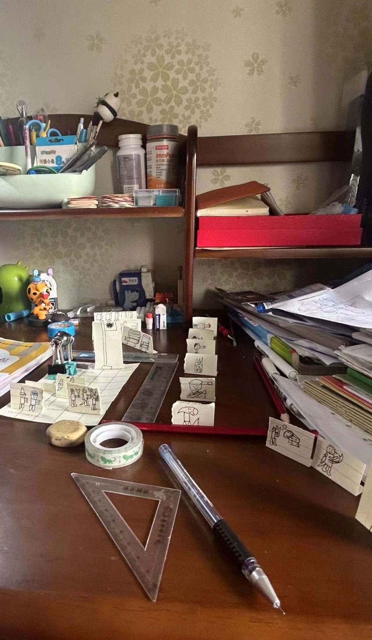 房间里静悄悄的,李爸爸还以为孩子在房间里认真做作业,一脸欣慰。一个小时后,李爸爸想着时间差不多了,就进房间看看。一进去,直接“气炸”了!试卷一动没动,孩子正趴在桌上聚精会神地画“植物大战僵尸”,“植物”和“僵尸”齐刷刷排了几列。桌上还放着尺子,像模像样地给“僵尸”铺了一条道儿。