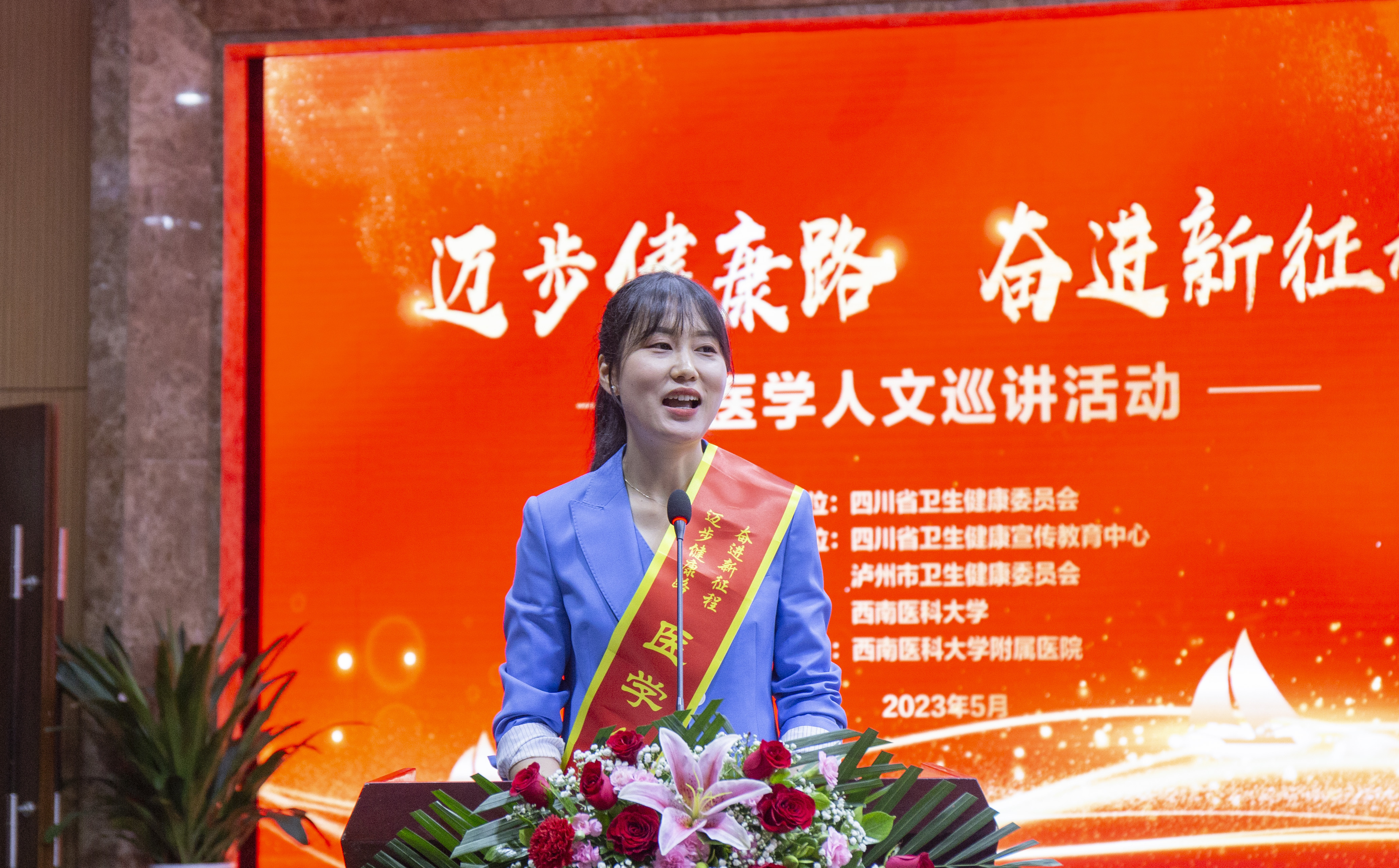 5月24日,由四川省卫生健康委员会主办,四川省卫生健康宣传教育中心、泸州市卫生健康委员会、西南医科大学承办,西南医科大学附属医院协办的“迈步健康路 奋进新征程”医学人文巡讲活动在泸州举行,这是本次巡讲活动的第二站。