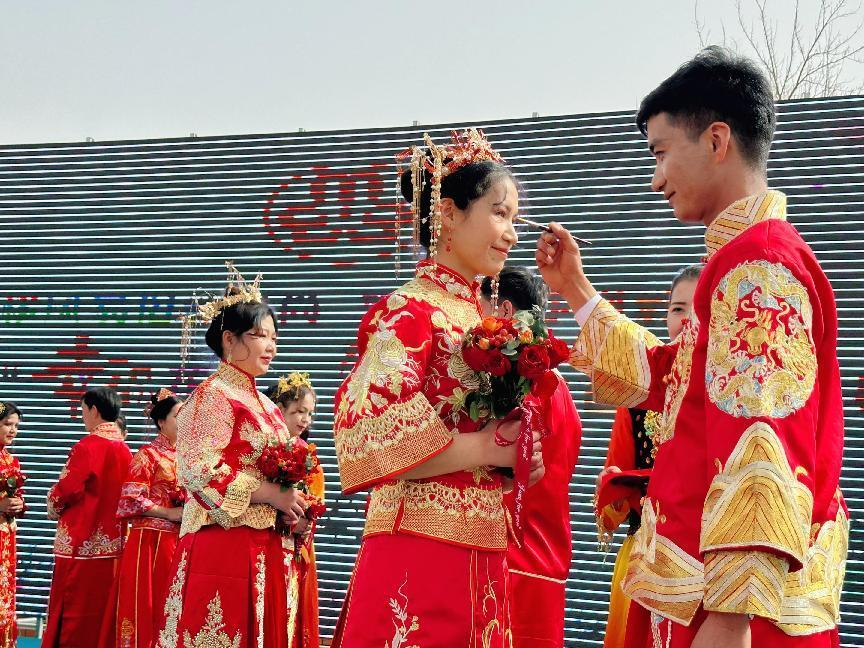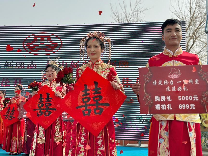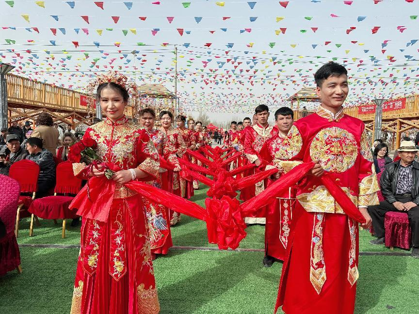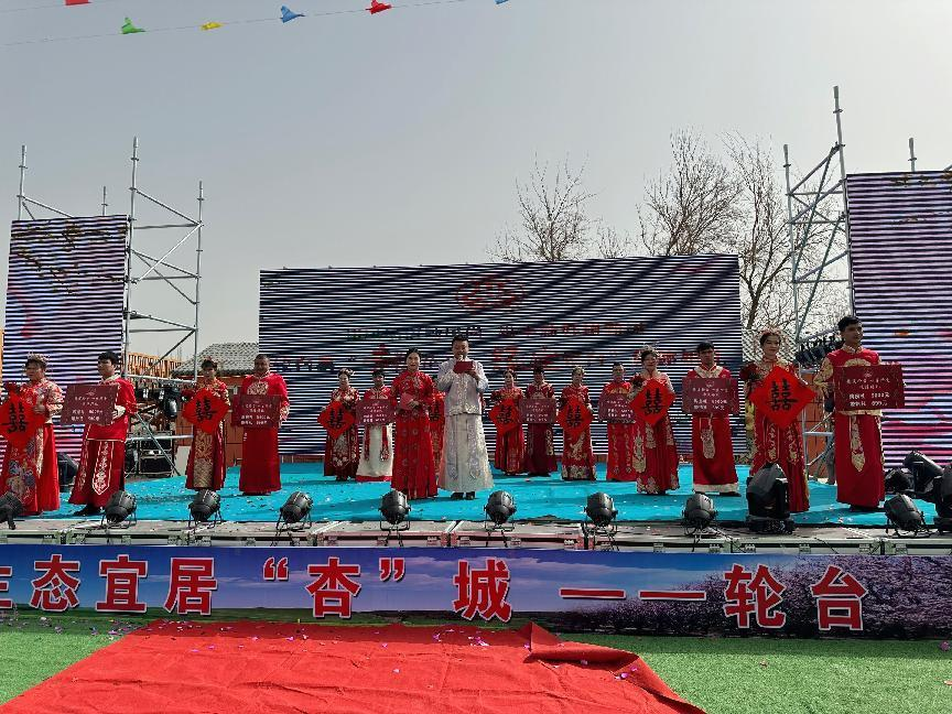 三拜礼、结发礼、描眉礼……3月26日,一场朴素、浪漫又独具中华传统文化特色的集体婚礼在轮台县阳霞镇举行。现场,百亩杏花竞相绽放,把春日乡村装点得格外动人。集体婚礼以传统的中式婚礼举行,8对新人在众人见证下完成人生大事,开启幸福人生。