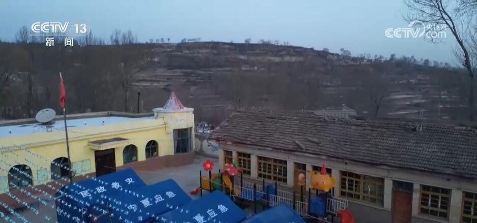 总台记者 马丽:我现在是在积石山县前岭小学附属幼儿园。目前,这里也是前岭村的一个集中安置点。地震发生后,这里的主体校舍没有明显受损,并且校内广场有大面积的空地,所以被作为了临时安置点,来安置附近的40余名村民。其中,有近30名是小学生和幼儿园的小朋友。他们有些是村民自己的孩子,有些是附近亲戚家的孩子。考虑到这里的环境更加稳定和保暖,孩子们也被聚集到了这里。现在,正是早起的时间,在安置点也升起了袅袅炊烟,阳光从远处照了过来。