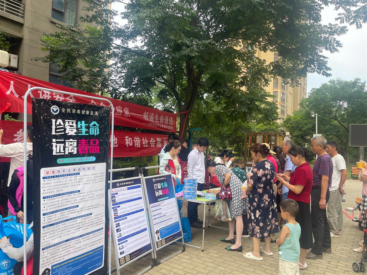 红升社区、升官渡社区、江大园社区等在小区内张贴禁毒海报、播放禁毒视频、发放禁毒宣传手册。此外,工作人员现场向居民们讲解《中华人民共和国禁毒法》和《戒毒条例》等相关法律法规,陈列毒品样品,进一步提高居民的识毒、防毒能力。