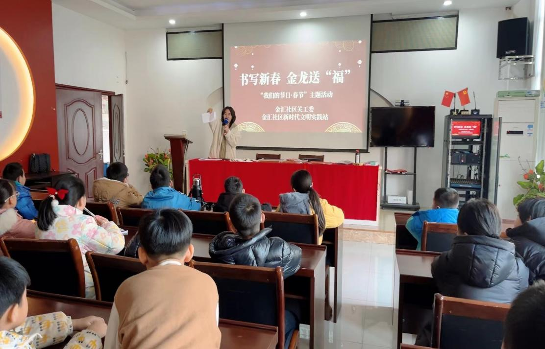 为营造民族团结、喜庆、欢乐、祥和的节日气氛,1月27日下午,长沙市天心区文源街道金汇社区党委、新时代文明实践站、关工委联合湖南知唯文化组织青少年开展“书写新春,金龙送‘福’”暨“我们的节日·春节”主题活动,同心共筑中国梦。