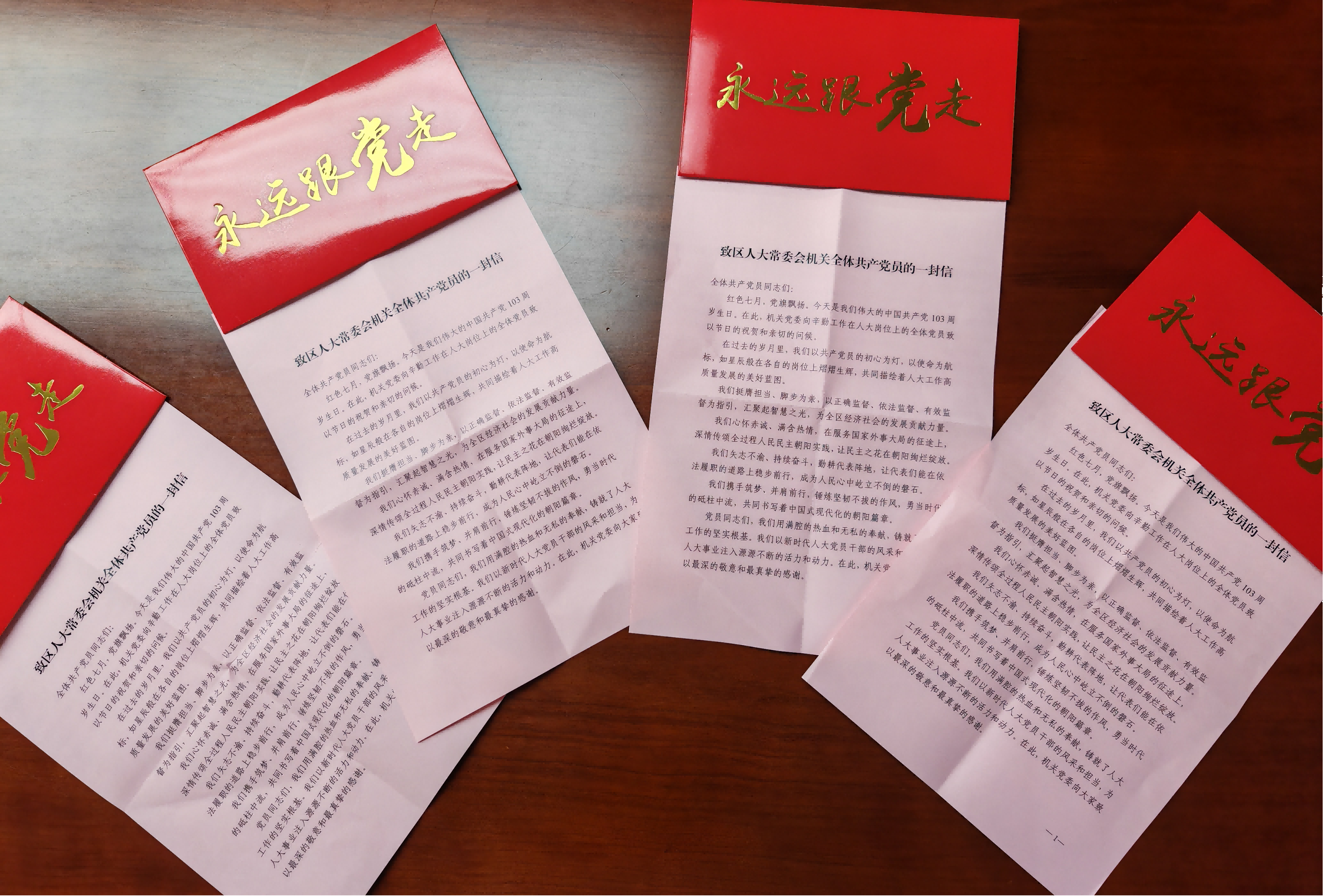 7月1日当天,机关党委为机关全体党员送上《致机关全体共产党员的一封信》,和党员干部一起回顾过去的奋斗历程,对党员干部的付出致以敬意和感谢,鼓励党员干部以更加坚定的信念、更加昂扬的热情、更加旺盛的斗志、更加务实的作风,在平凡的岗位上继续书写共产党员的忠诚与执着,在默默奉献中当好先锋模范,在人大工作实践中继续展现共产党员的朝气与活力。