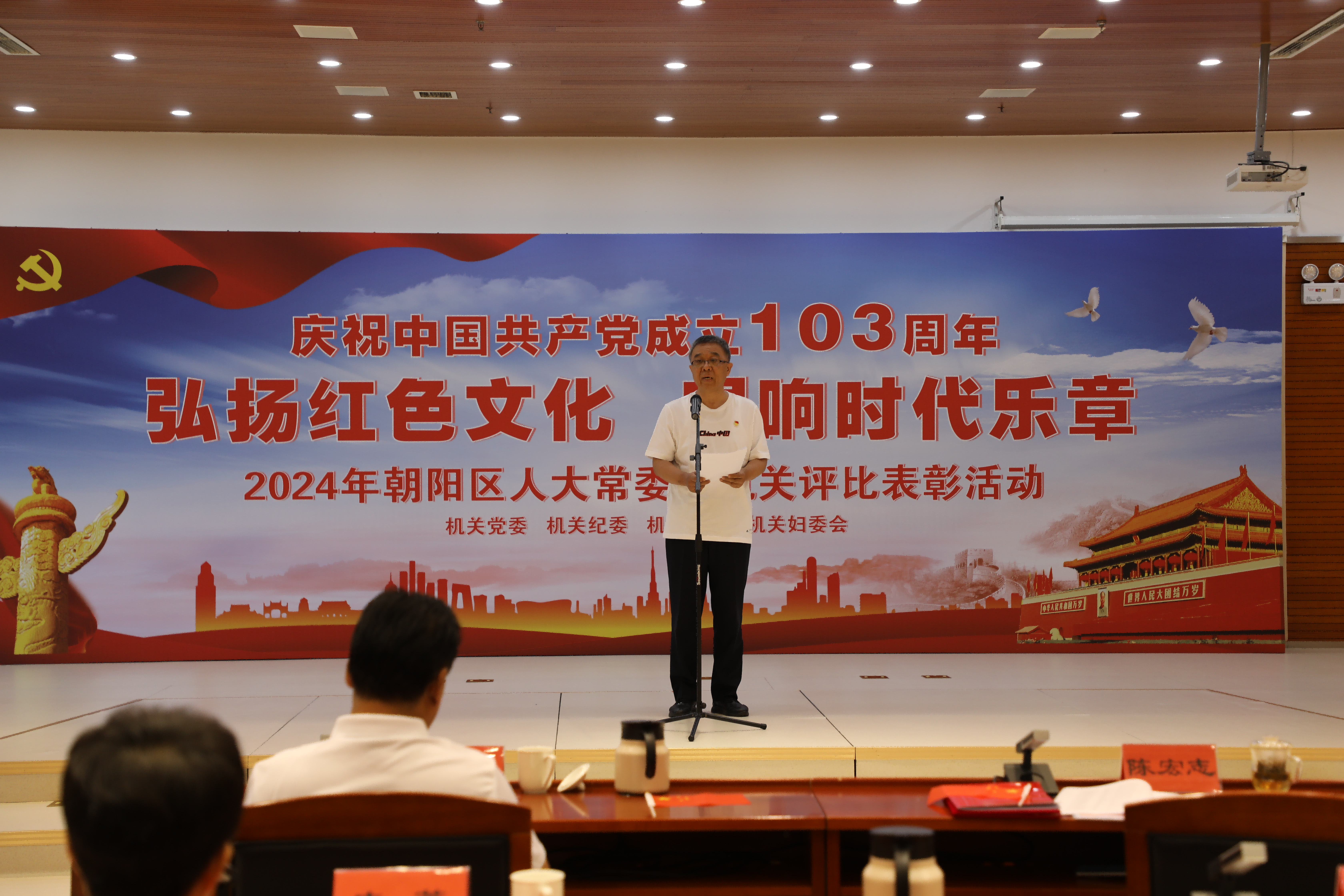 为庆祝中国共产党成立103周年,回顾党的光辉历程,传承红色文化,展现党建风采与活力,营造团结奋进的机关氛围,展示机关党员干部良好精神风貌,在区人大常委会党组的领导下,区人大常委会机关党委联合机关纪委、工会、妇委会共同组织开展“十个一”系列活动,进一步激发党员干部爱党爱国热情,进一步激励党员干部为打造全过程人民民主基层实践、中国式现代化朝阳实践奋力拼搏、贡献力量。