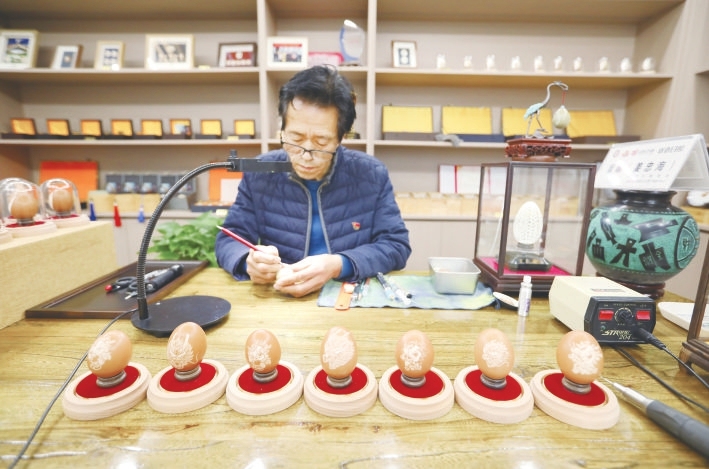 龙年将至,日照蛋雕非遗文化传承人姜忠海分别在鹅蛋和鸡蛋上雕刻了“龙腾富贵”“龙行天下”以龙为主题的蛋雕作品,迎接农历新年的到来。