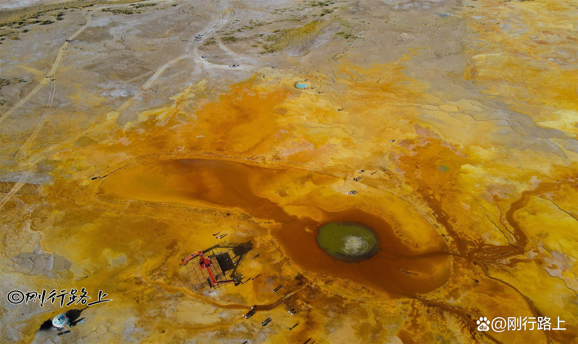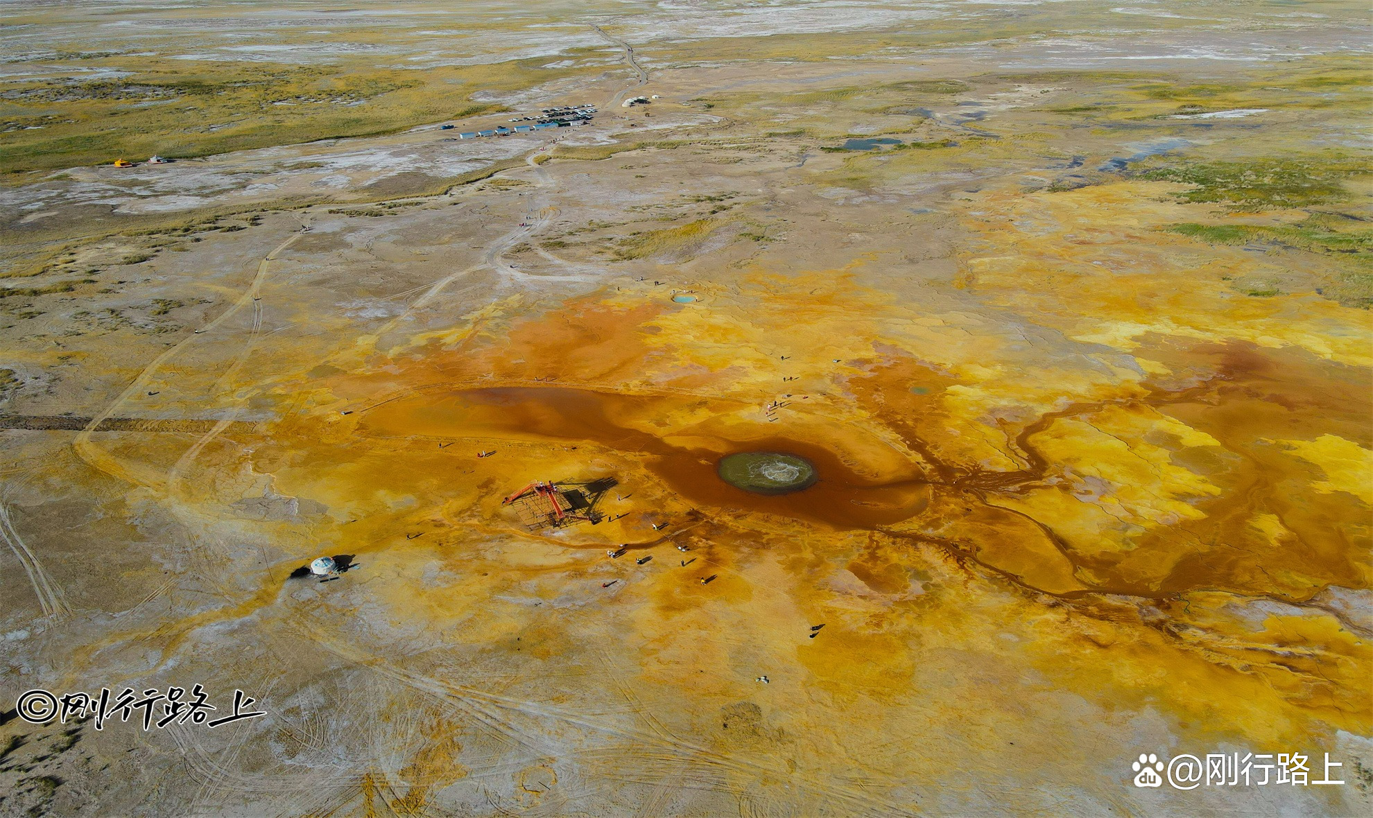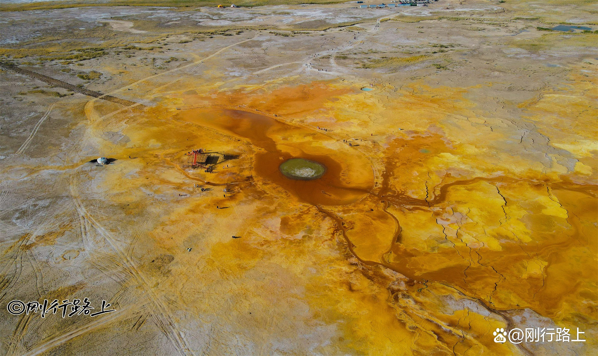 此处荒无人烟,只有一片橙色的色调和与众不同的热温泉,却让人惊艳。从空中俯瞰,泉眼与喷涌而出的泉水以及周围土地上深红色环带状的沉淀物,组成了一个奇特的瞳孔造型,仿佛一只镶嵌在大地上的眼睛,俯瞰就像是一只眼睛盯着你看,因此才有了“大地之眼”“恶魔之眼”这样的称呼。