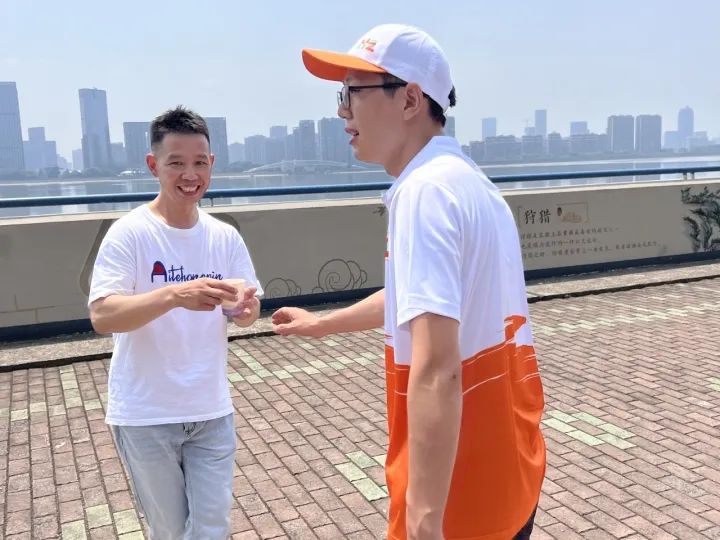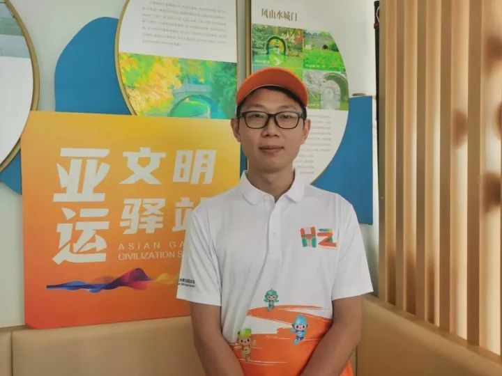 8月11日中午时分,杭州上城区的钱塘江江堤边,“杭州好人”、跳桥救人的外卖小哥彭清林身穿“爱杭城”亚运城市志愿服装亮相吟潮亚运文明驿站。同时,他也有了一个新身份——亚运城市志愿者。