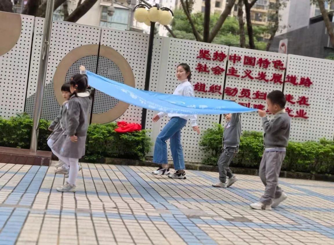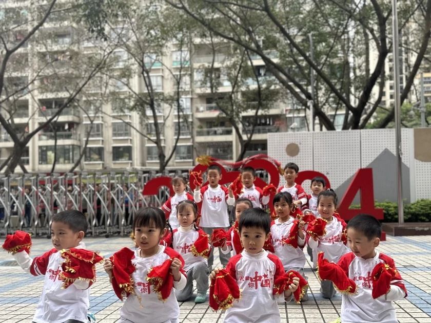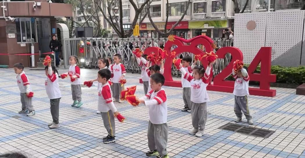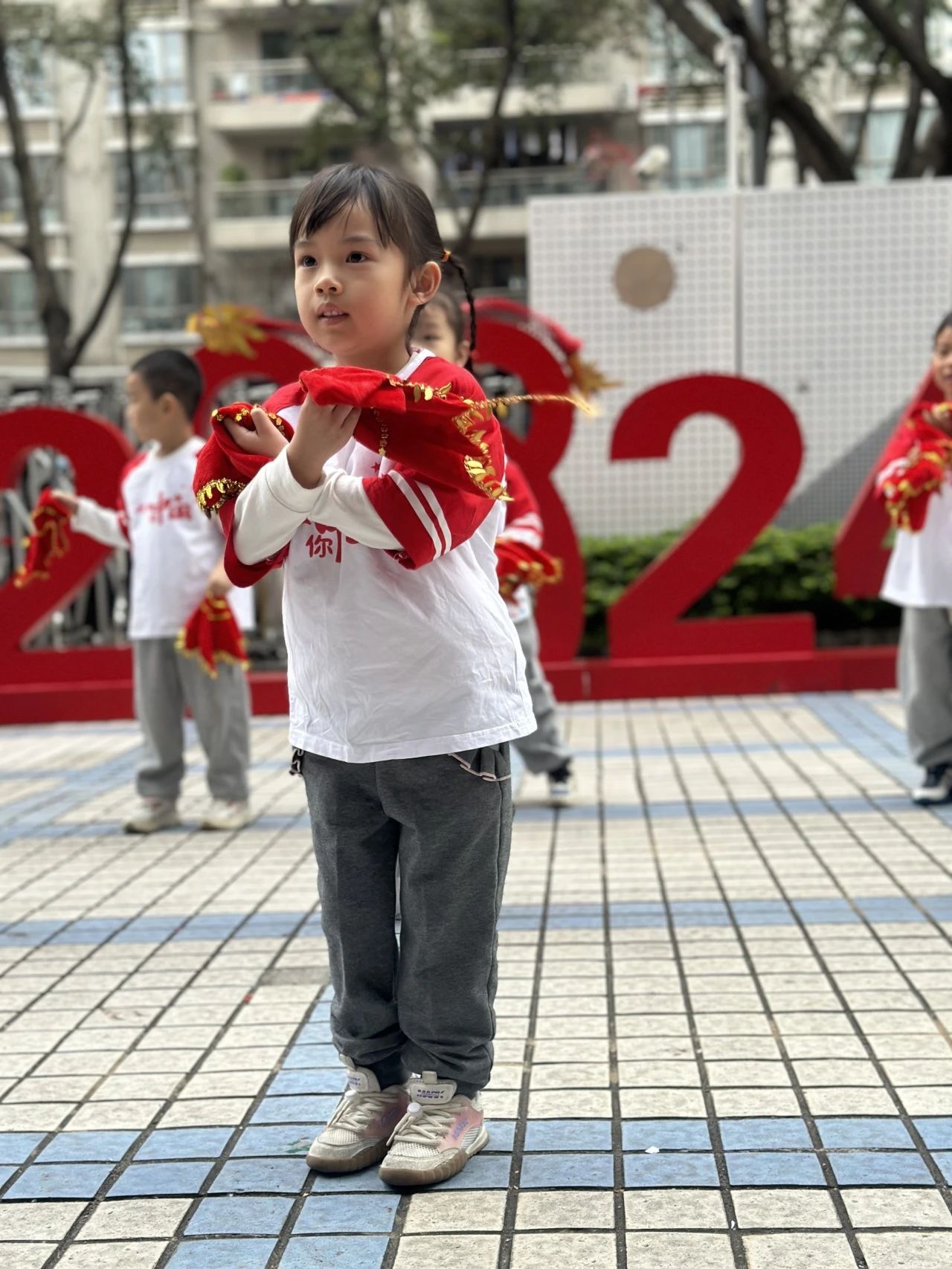 参与舞蹈《开门红》的表演的中二班十余位小朋友手拿红手帕,伴随着欢快的音乐响起,他们开始舞动身体,灵动的舞姿仿佛在讲述着一个关于希望与繁荣的故事。表演中,他们不断变换队形,时而聚拢,时而散开,仿佛在用舞蹈语言描绘出一幅幅生动的画卷。