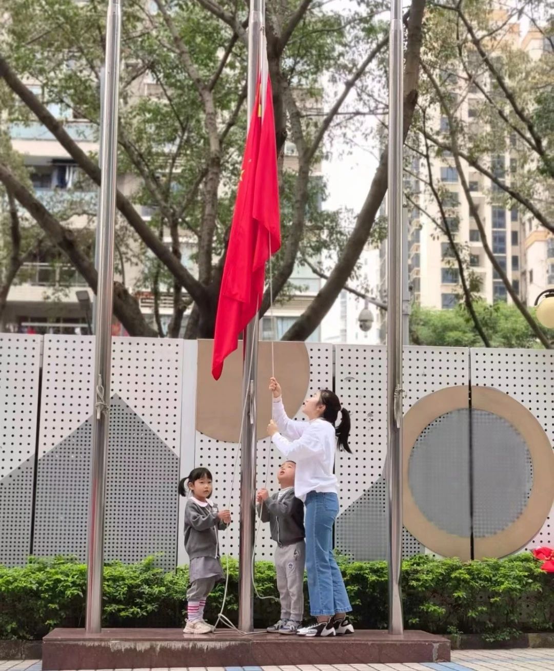 看着升起的国旗,大家心中充满了对祖国的无限敬仰和热爱;热烈的氛围感染了每个人,园内外的家长也纷纷高举起手机,将一幕幕记录下来。