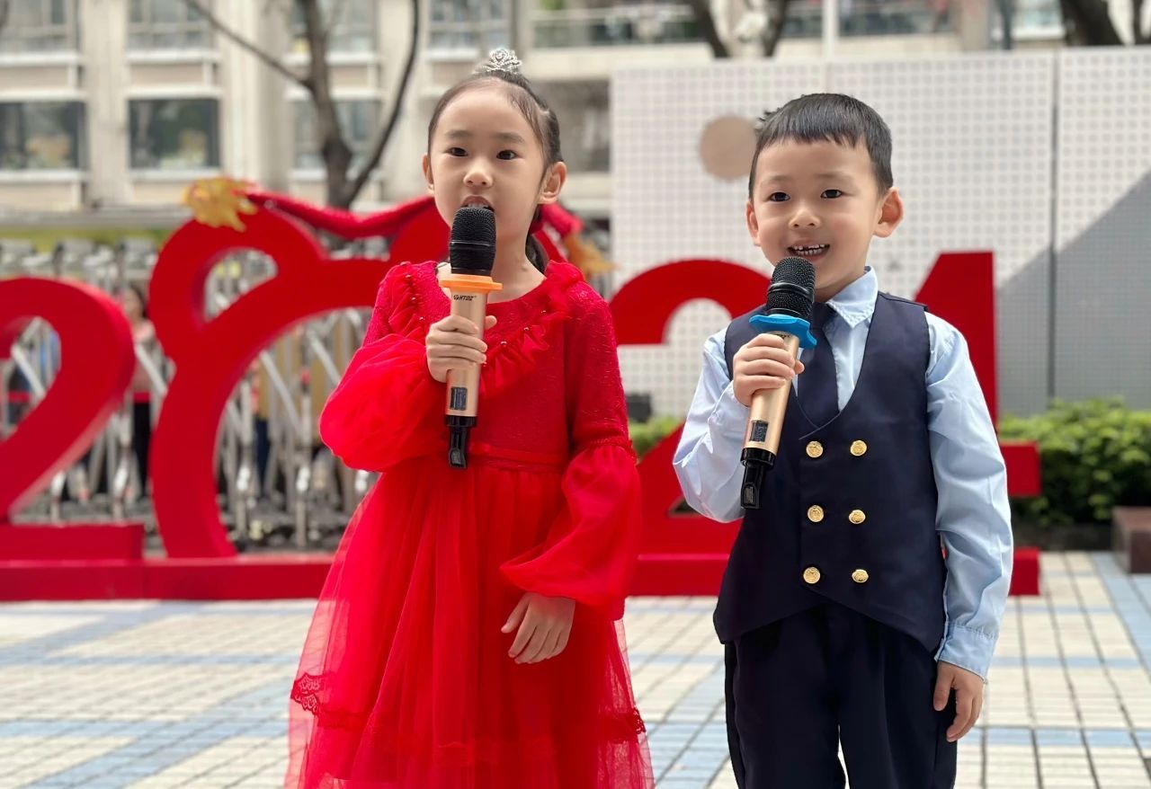 我们在12月29日的园庆日,共同回顾了满载快乐和收获的2023年,今天,我们把这份快乐和收获寄予我手里的这一株向日葵,请两位小主持人和我一起将它栽种到这个花盆里,相信在我们的用心照顾下,新的一年里,它的叶更绿、花更艳、果实更饱满,更期待我们的快乐绵延,收获满满!