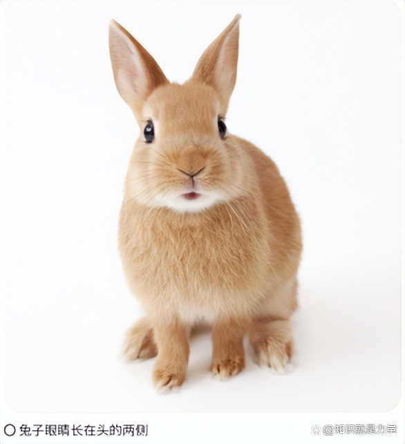 兔子较大的眼间距也与生存相关。要知道,它们是许多动物的美味,而长在头两侧的眼睛,会为兔子提供更大范围的视野,助其发现各角度的天敌,以便迅速逃生。不过,这也有缺点:两眼视线不能重叠,无法看到有立体感的画面,也不能看到正前方的物体——它们快速奔跑时,很容易乱撞。从此方面讲,“守株待兔”也有一定的科学道理。