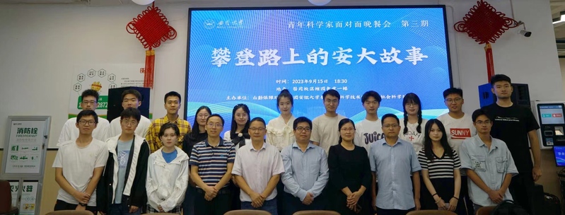 9月15日晚“青年科学家面对面”晚餐会第三期在安徽大学磬苑校区桔园食堂一楼举行。物理与光电工程学院杨名教授、材料科学与工程学院张惠教授、计算机科学与技术学院张兴义教授、电气工程与自动化学院何舒平教授、人工智能学院沙文教授与来自大数据与统计学院、资源与环境工程学院、经济学院、法学院、社会与政治学院等10个院系的16名同学围绕“攀登路上的安大故事”主题进行了深度交流。