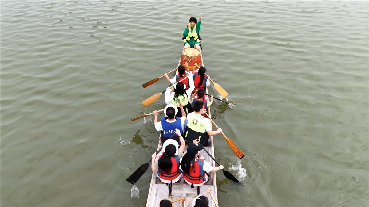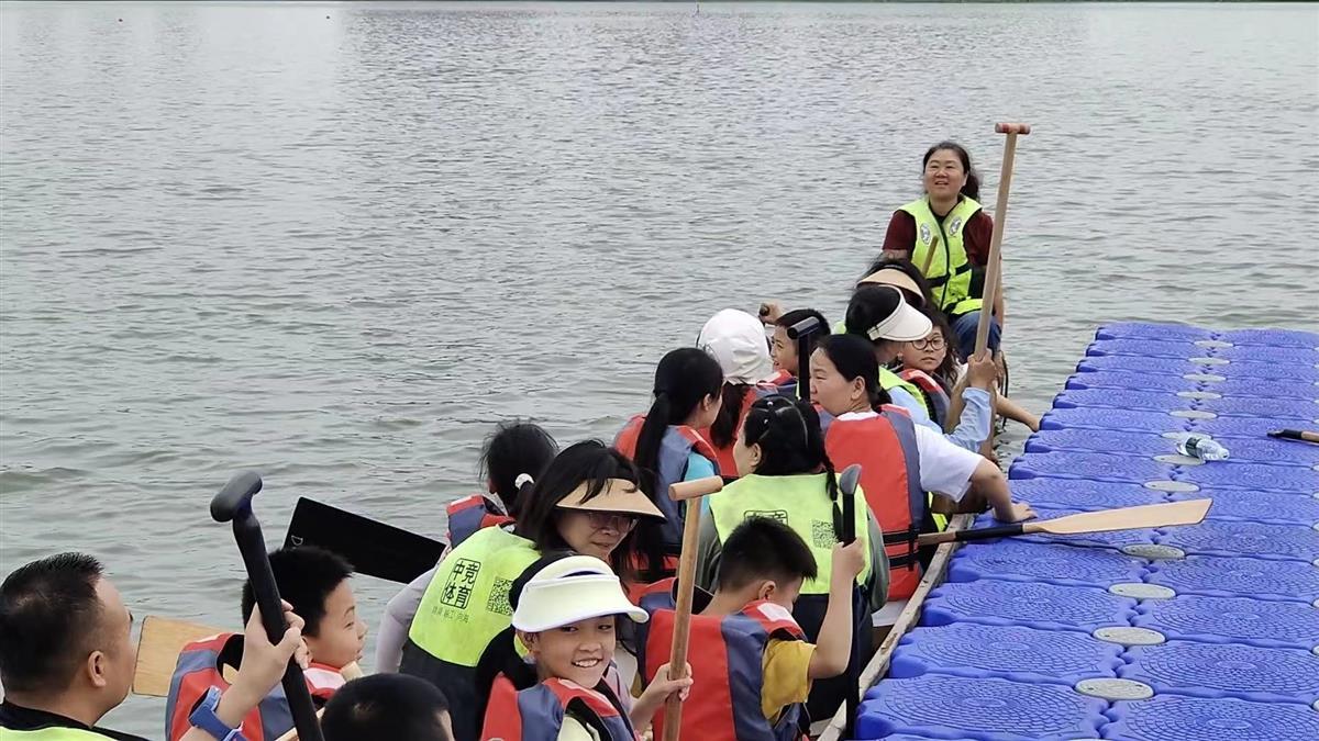 不仅孩子们玩得开心,家长也乐在其中。“这是我第一次体验划龙舟,和孩子一起亲身感受龙舟非遗文化的韵味,这个端午节很有意义,感谢学校组织这么有趣的亲子活动。”一名家长说。