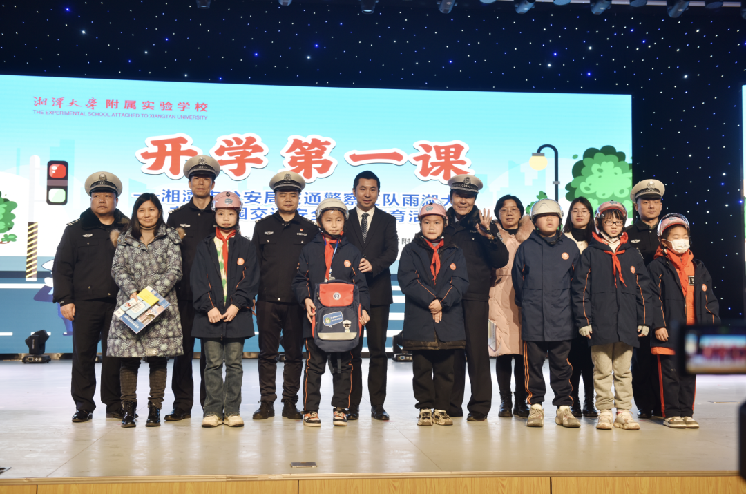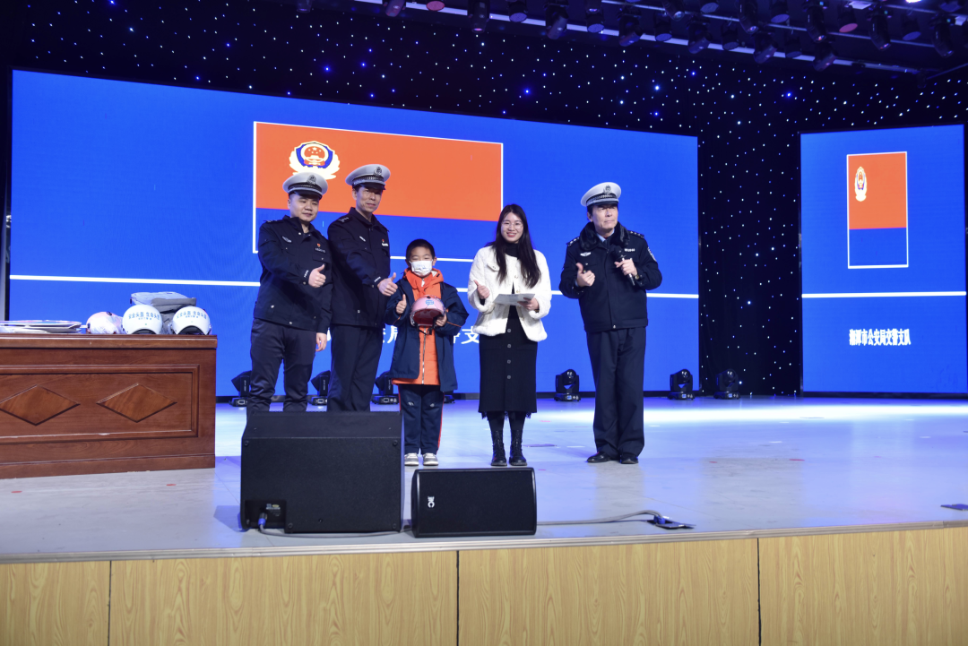 2月9日上午10点,湘潭市公安局交通警察支队安宣科联合雨湖大队以宣传“戴盔行动”为主题前往湘大附属实验学校,开展“开学第一课”进行交通安全宣传教育活动,进一步提升广大师生的交通安全意识,切实做到知危险、会避险,远离事故伤害。人民交通网、湖南日报、湖南法治报、湘潭日报、湘潭电视台等媒体记者以及现场近600名师生参与此次活动。