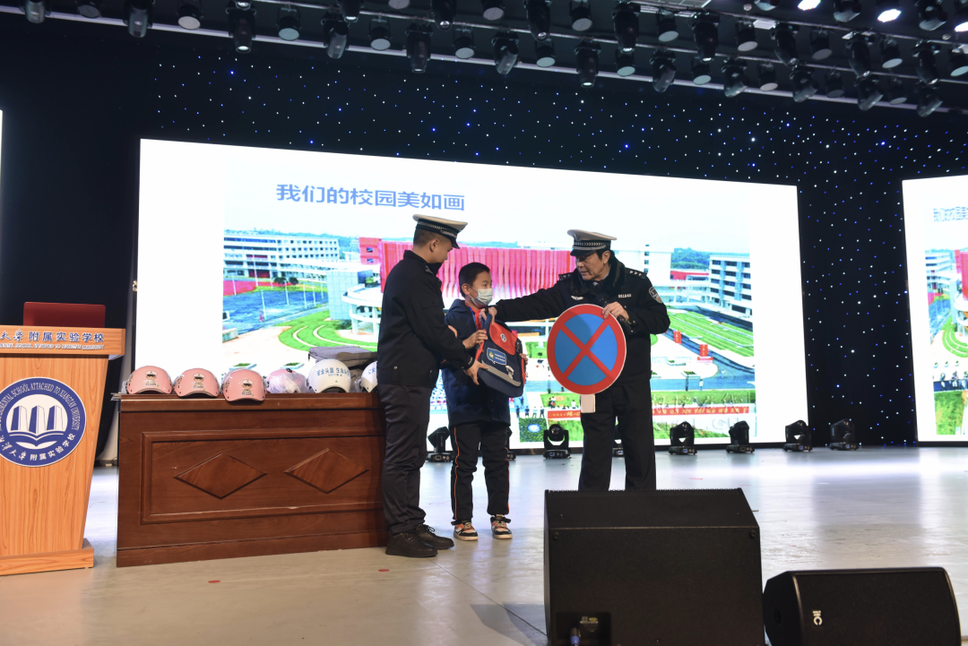 “同学们,上学道路千万条,交通安全第一条!”活动开始,交警支队安宣科副科长钱文海表示,希望所有同学和老师在今后成为文明交通的参与者、交通安全宣传员,通过小手拉大手的方式,督促家人要遵守交通法规、安全文明出行,特别是在驾乘摩托车、电动自行车时,一定要正确佩戴安全头盔,充分发挥“警校家”联动模式,将交通安全知识传遍千家万户。