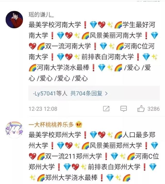 “我觉得不管谁赢了,分一半送给另一个,我们依旧恩爱@郑州大学 @河南大学”