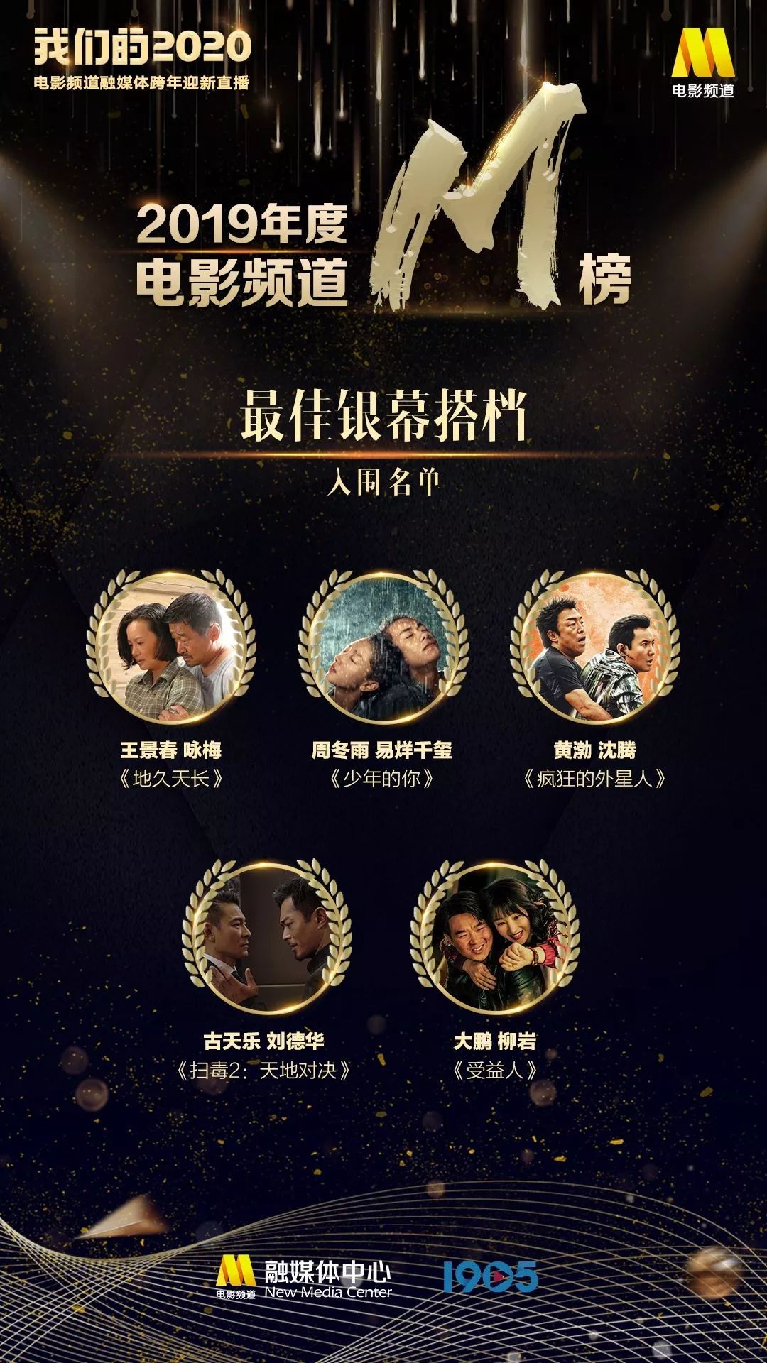 此外,《地久天长》中的王景春与咏梅、《少年的你》中的易烊千玺与周冬雨、《疯狂的外星人》中的黄渤与沈腾等入围竞逐“最佳银幕搭档”荣誉。