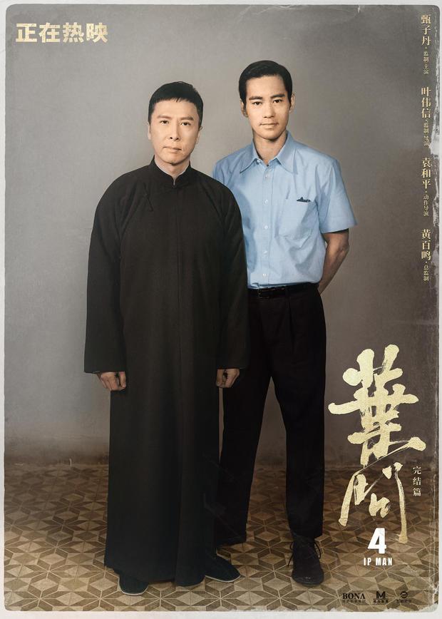 电影《叶问4:完结篇》自公映以来,已连续五天蝉联单日票房冠军,总票房达4.3亿。今日,影片曝光了一组叶问/李小龙师徒海报,甄子丹和陈国坤神还原了叶问李小龙师徒,再现两代功夫大师合影。在电影中,叶问李小龙师徒坚守立场,一起将中华武术发扬光大。长相酷似李小龙的陈国坤,还重现了世界空手道大会上,李小龙以寸拳打飞对手的经典一幕。