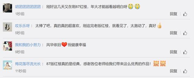 网友看后纷纷感叹:“87版红楼大家族真好”、“时间过得太快了”、“岁月如歌”。