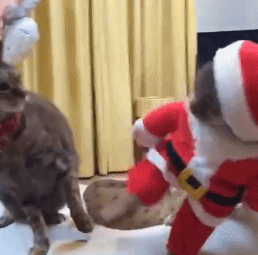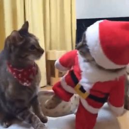 而有一位网友给家里猫咪穿戴圣诞套装的时候,不小心被另一只猫给发现了,不料下一幕却发生了这样的事情,这可把一旁的网友给逗乐了。
