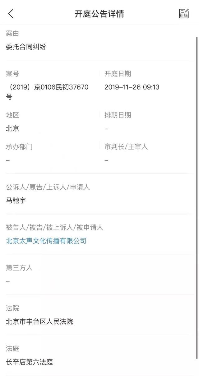 抱着不冤枉任何一方的态度,我们也多次联系了太声文化的工作人员,但至今未得到任何回应。目前,根据企查查的信息,11月份就已经有一位叫做“马驰宇”的音乐人因“委托合同纠纷”将太声文化告上了法庭。但是根据H的描述,虽然有几十位rapper想要与公司解约,但是目前并未有一人成功。