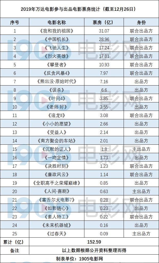 据统计,2019年至今,万达电影参与了25部国内上映院线电影的出品,累计综合票房达到152.59亿。无论是参与出品数量,还是累计票房,皆位于传统“四大”之首。