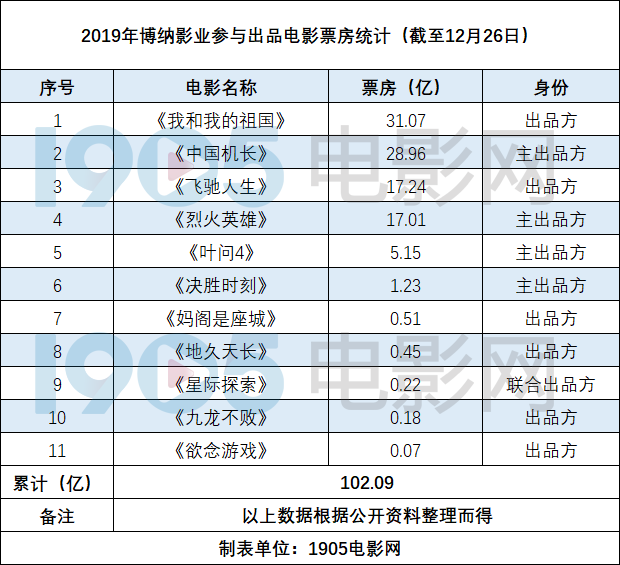 与光线一样,专注于特定类型片发力的博纳影业2019年收获颇丰。