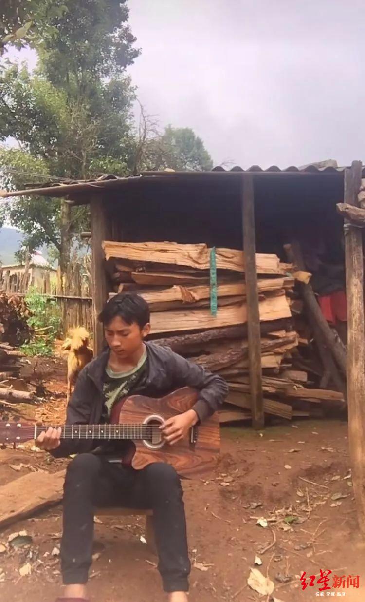 每到假期,杨志强每天帮父母忙完农活,就会在家里的柴垛上弹吉他唱歌。没有听众,他便唱给家里饲养的动物们听,那把吉他已被他弹得掉了漆。