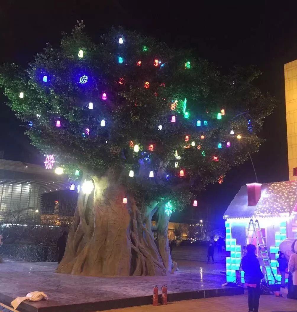 一棵近10米高的圆梦河西许愿树十分亮眼