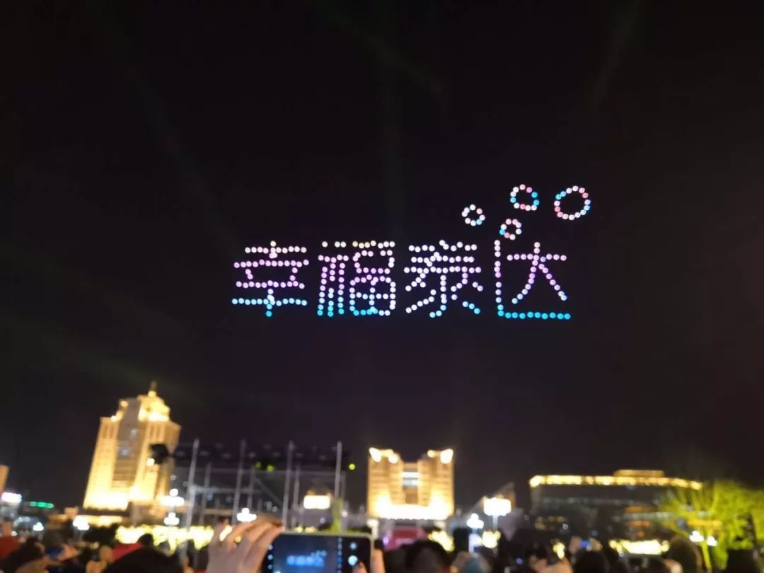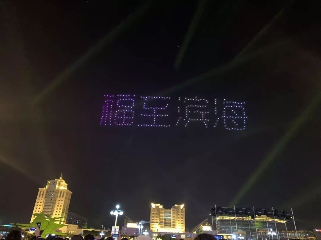 300架无人机在滨海广场上方腾空而起