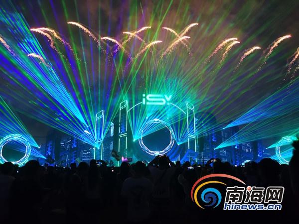 绚烂的焰火与动感的音浪奇妙融合。南海网记者 刘丽萍 摄