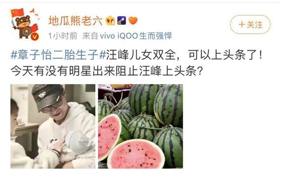 今天中午12时许,章子怡官宣生子,网友祝福俩人儿女双全的同时,也调侃汪峰“使出生孩子的力气”终于上了个头条,可是……明明上热搜的是章子怡啊。